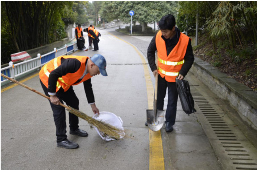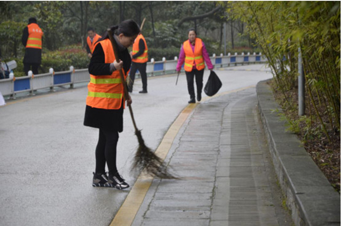 大家不怕臟、不怕累、密切配合,對公園道路及綠化帶內的落葉、雜草、垃圾等進行了全面清理打掃,整條道路上洋溢著一派團結協(xié)作、奮發(fā)向上的融洽氣氛。經過2個多小時的緊張勞動,被打掃過的道路煥然一新,受到公園工作人員和過往群眾的一致好評。