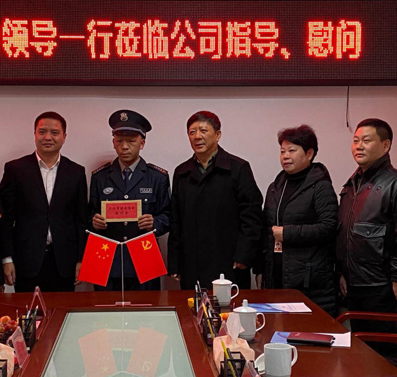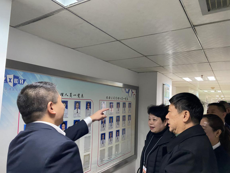 2020年1月17日上午九點(diǎn)十分,貴陽市新成立的保安協(xié)會會長劉毅一行到貴州陟翔保安有限公司進(jìn)行指導(dǎo)、慰問,總公司總經(jīng)理馮波、常務(wù)副總張小慶、黨支部書記李明澤、保安公司一區(qū)域經(jīng)理劉帆及相關(guān)部門同志陪同。