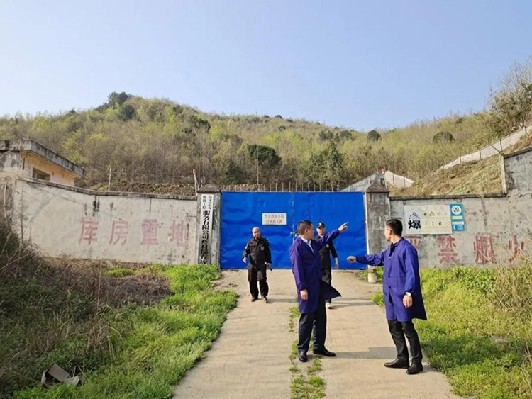 3 月 18 日,集團(tuán)公司董事長馮波蒞臨遵義市聯(lián)發(fā)爆破工程服務(wù)有限公司檢查指導(dǎo)工作。在聯(lián)發(fā)公司總經(jīng)理王濤及相關(guān)部門負(fù)責(zé)人的陪同下,馮波董事長一行首先來到爆炸物品儲存庫房,檢查庫區(qū)安防設(shè)施,查閱臺賬記錄,調(diào)看監(jiān)控圖像,關(guān)切詢問庫房工作人員的工作和生活情況,同時對檢查中存在的問題進(jìn)行現(xiàn)場督導(dǎo)。