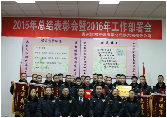 2016年1月15日,貴州鎮(zhèn)東護(hù)運(yùn)有限公司2015年工作總結(jié)及2016年工作部署會議在東山大酒店六樓會議室召開,參會人員有:貴州鎮(zhèn)東護(hù)運(yùn)有限公司董事長王訓(xùn)江、副董事長冉光齊、監(jiān)事會主席徐登嘉及各分公司負(fù)責(zé)人。