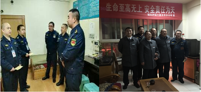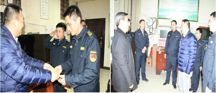 在新年元旦即將到來之際,2015年12月31日晚,總公司王訓(xùn)江董事長(zhǎng)趕赴銅仁,在銅仁本部總經(jīng)理陳葉、副總經(jīng)理劉興華、劉樹等陪同下,深入一線,看望和慰問堅(jiān)守崗位、履職盡責(zé)的金庫(kù)守護(hù)員工,對(duì)他們?cè)?015年的艱辛付出給予了充分肯定和高度評(píng)價(jià),并帶去了各級(jí)領(lǐng)導(dǎo)對(duì)員工的關(guān)愛、新年的祝福和期望,使員工倍受鼓舞和感動(dòng),一致表示要更加努力工作,以更好的工作成績(jī)回報(bào)公司的厚愛。王訓(xùn)江董事長(zhǎng)同時(shí)還看望和慰問了客戶單位的工作人員。根據(jù)王訓(xùn)江董事長(zhǎng)的指示,黔東南州分公司總經(jīng)理黃水波、六盤水市分公司總經(jīng)理夏誠(chéng)豇,于元旦前夕分別帶領(lǐng)班子成員看望和慰問了在崗守護(hù)隊(duì)員。