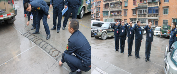 2015年12月11日,鎮(zhèn)東護(hù)運(yùn)有限公司黔東南州分公司組織天柱守押中隊(duì)在農(nóng)行大院舉行年終訓(xùn)練成果匯報(bào)暨反恐消防演練,并邀請(qǐng)了縣公安局治安大隊(duì)、縣銀監(jiān)局、縣人民銀行、縣工行、縣農(nóng)行、縣建行、縣電視臺(tái)等單位參加和觀看。訓(xùn)練成果匯報(bào)內(nèi)容主要包括反恐演練、隊(duì)列和擒敵術(shù)。反恐演練模擬運(yùn)鈔車在網(wǎng)點(diǎn)送鈔時(shí),押運(yùn)員遭遇歹徒徒手搶槍;運(yùn)鈔車網(wǎng)點(diǎn)收鈔時(shí),解款員提箱返回上車過程中遭遇歹徒持刀搶劫;消防演練科目主要是如何正確使用滅火器。