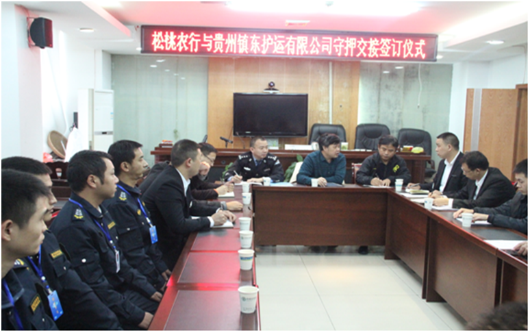 經(jīng)過半年的業(yè)務(wù)對接和洽談,銅仁本部于11月16日至20日正式接手德江、石阡、印江、江口、松桃五縣農(nóng)業(yè)銀行守押業(yè)務(wù)。銅仁市公安局保安大隊大隊長王世軍、銅仁市農(nóng)行副行長任達(dá)輝、銅仁市農(nóng)行保衛(wèi)部經(jīng)理?xiàng)蠲、銅仁本部總經(jīng)理陳葉、副總經(jīng)理劉興華、劉樹等出席了五縣守押業(yè)務(wù)交接儀式。
