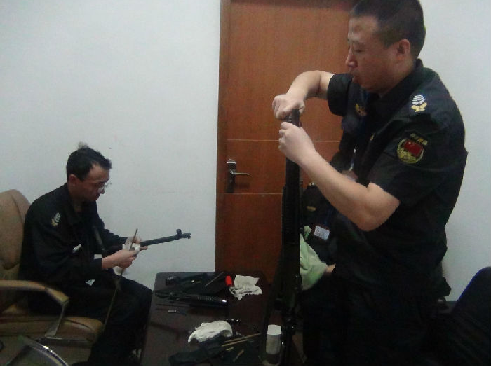 8月25日召開了車組長(zhǎng)以上管理人員進(jìn)行了槍支培訓(xùn)及安全教育會(huì)議,并邀請(qǐng)公安機(jī)關(guān)相關(guān)領(lǐng)導(dǎo)現(xiàn)場(chǎng)指導(dǎo)。