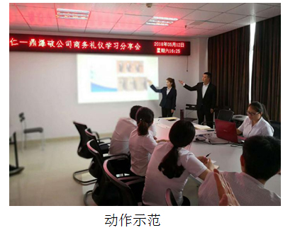 會上,我們從禮儀老師的基礎(chǔ)禮儀、服務(wù)禮儀、商務(wù)會面、接待禮儀、中餐禮儀等一系列在日常的商務(wù)交往中經(jīng)常碰到的問題做了大致講解,并對一些禮儀動作做了示范,爭取最大程度的起到傳幫帶作用。