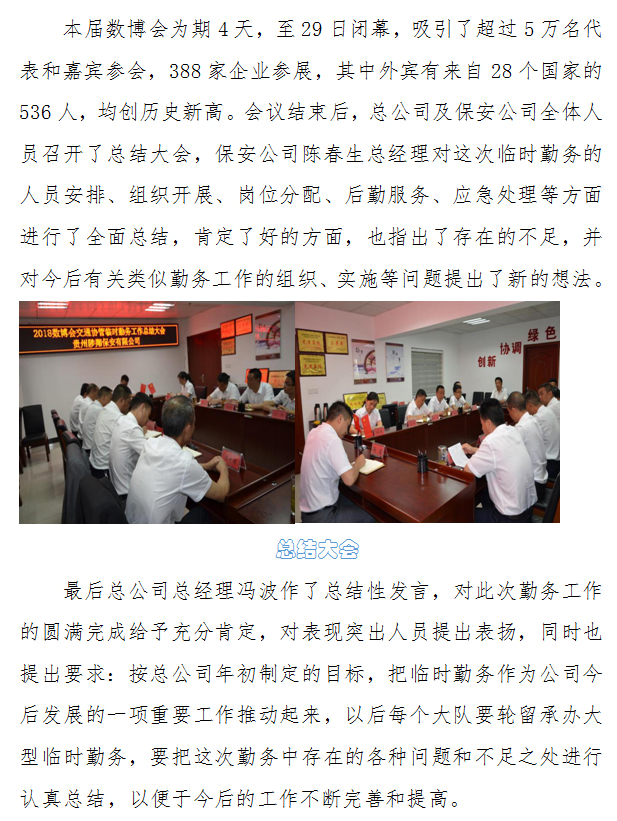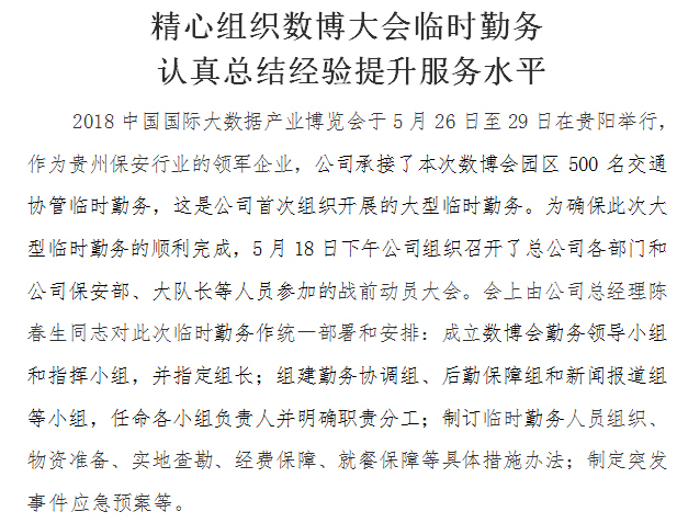 精心組織數(shù)博大會臨時勤務 認真總結經(jīng)驗提升服務水平