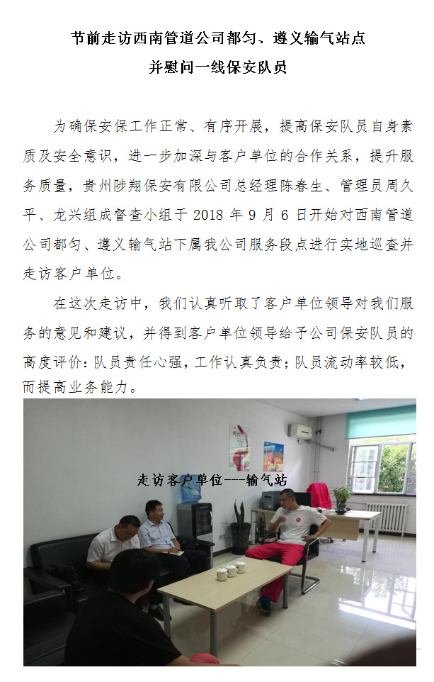 前走訪西南管道公司都勻、遵義輸氣站點 并慰問一線保安隊員