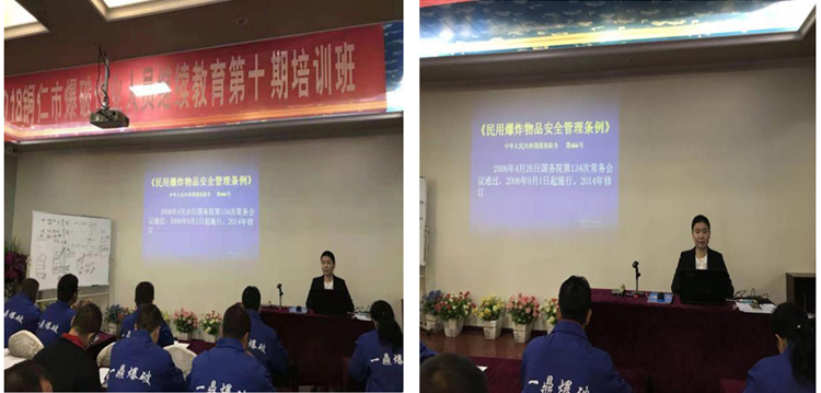 本次培訓特別邀請了浙江高能爆破專家、中級工程師李靜老師親臨現(xiàn)場授課。在培訓過程中,李靜老師針對不同工種在不同的工作崗位存在的問題,編制了針對性較強的培訓教案,為了避免培訓枯燥乏味的,李老師采用了簡潔生動的幻燈片模式進行講解。通過言簡意賅、生動活潑的語言和圖文并茂以及播放視頻事例教授方式,向參訓人員傳授了各類特殊工種的安全技術知識、安全法規(guī)和實際操作技能等相關專業(yè)知識。